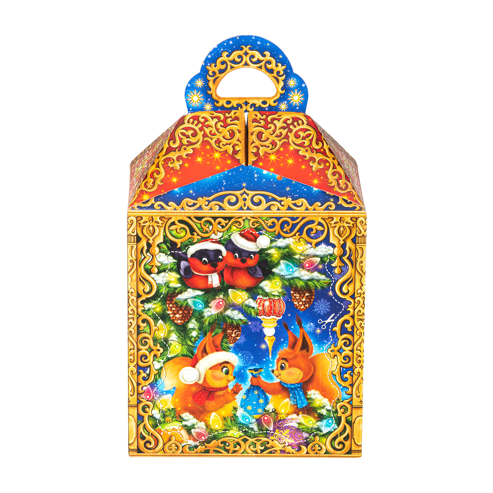Ищете новогодний сладкий подарок для праздника в школу или детский сад? Присмотритесь к набору “Ларец лесной”.  Его картонная упаковка по своей форме напоминает фонарик, на ней изображен прекрасный зимний лес и его веселые обитатели, которые прибежали с разных уголков, чтобы всем вместе отметить наступающие праздники.  А что же внутри этой яркой упаковки? Там находится более 30 разнообразных лакомств на любой вкус, а также небольшой памятный сувенир-магнитик с изображением символа наступающего года - грациозной благородной лошадки.
